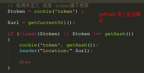 客户端如果是一个正常的浏览器,那么就会支持 HTTP 头中的 SET COOKIE 和 302 重定向指令,将带上正确的 Token 再次访问页面,这时候后台检测到正确的 Token ,就会放行,