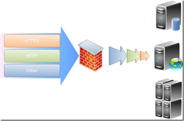 这两者串联部署在Web服务器前端时,市面上的大多数IPS均采用桥模式,而WAF是采用反向代理模式,IPS需要处理网络中所有的流量,而WAF仅处理与Web应用相关的协议,其他的给予转发,如下图: