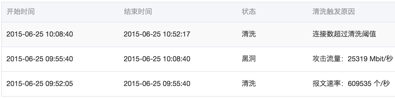 整个“攻击->清洗->黑洞”的过程在云盾控制台也有清楚的记录: