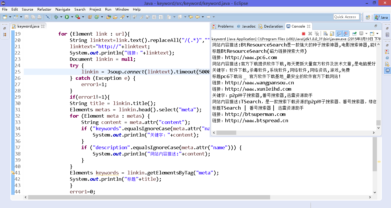 网站seo优化–jsoup 批量分析相关网站 标签,描述,关键词.
