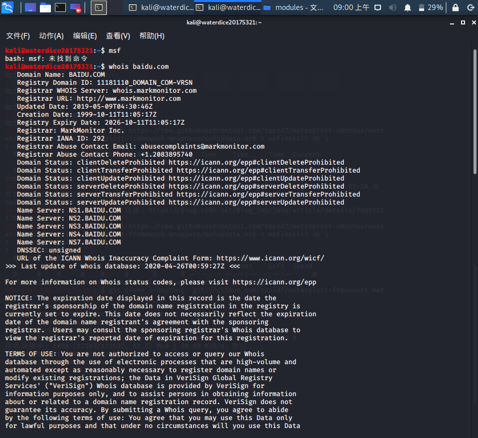 在终端输入whois baidu.com:
