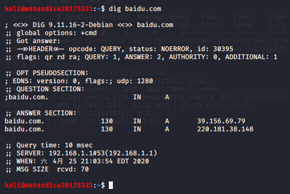 dig可以从官方DNS服务器上查询精确的结果,在终端输入dig baidu.com