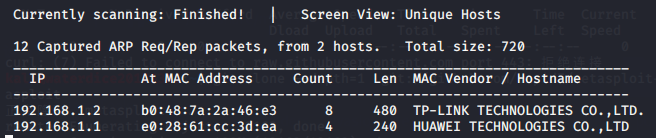 在linux下可以通过执行netdiscover命令直接对私有网段192.168..进行主机探测,结果如下: