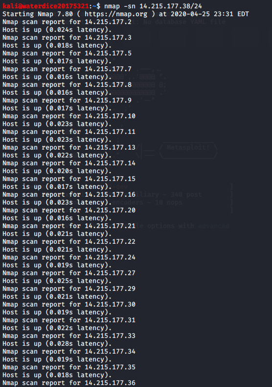 使用nmap -sn 14.215.177.38/24寻找该网段下的活跃主机