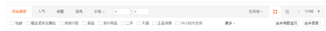 1、综合排序 2、人气排序 3、销量排序 4、信用排序 5、价格排序