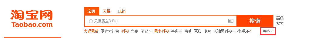 淘宝天猫的热门关键词可以在网页中查询得到,主页有一个“更多”,入口如下: