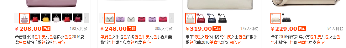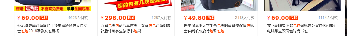 其实“包”和“包包”是一样的,还是假设我想要“单肩包”,由于只是搜索了“包”或者“包包”,那么即使在“牛皮“、”单肩包“、”白色”下排名很高的商品,在“包”或者“包包”这个关键词下排名是很低的,所以商品名称越合理运用完所有字节,而且不浪费1个字节的空间,这样子的优化来提高排名。总的来说就是,商品的名称越精准,排名就越高。