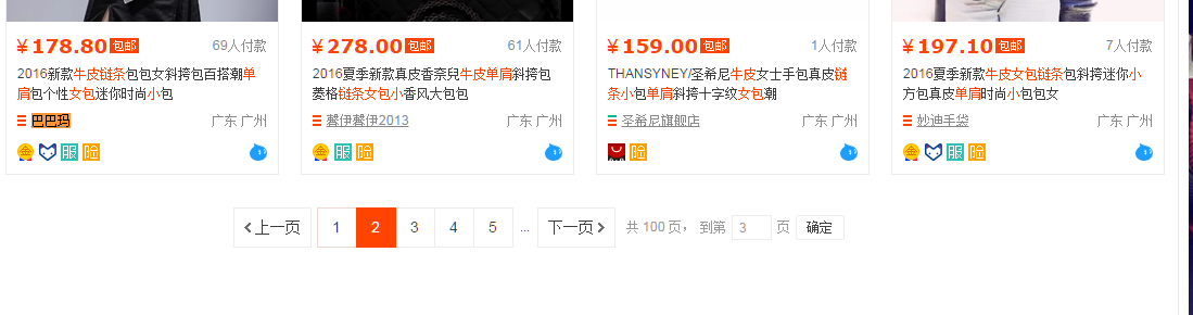 例如我现在搜索比较精准的关键词:“牛皮链条单肩女包”,在第二页的末尾发现本店铺的包包: