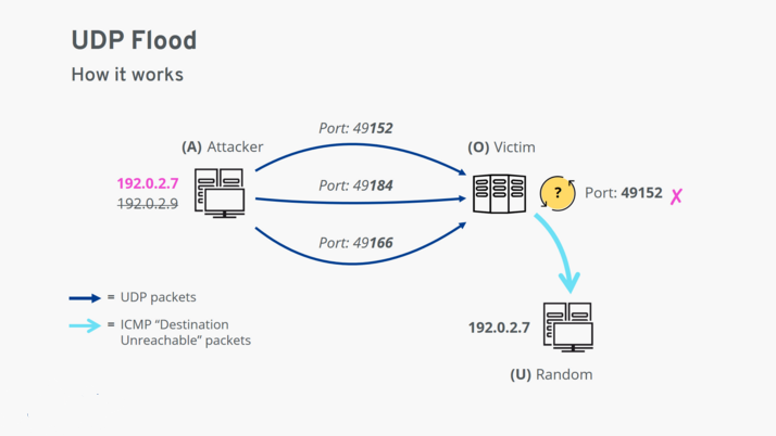 UDP Flood:这种类型的攻击主要依赖于无连接的用户数据报协议(UDP)。与 TCP 协议传输不同,数据可以通过 UDP 传输而无需事先建立连接。对于 DDoS 攻击,UDP 数据包被发送到目标系统上的随机端口。系统会尝试确定哪些应用程序正在等待传输数据,确认未成功的情况下,会将 ICMP 数据包连同消息 “ Destination Unreachable(目的地无法到达)” 一起发送回发送方。当请求量过大时,系统资源过载,就会影响普通用户的请求。