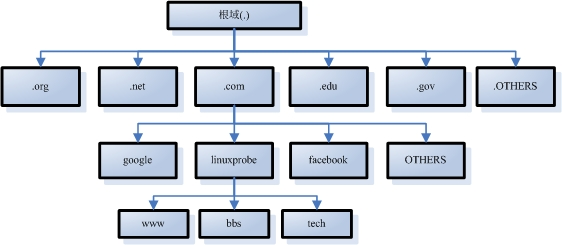 DNS域名解析服务采用的是目录树层次结构,如图所示。