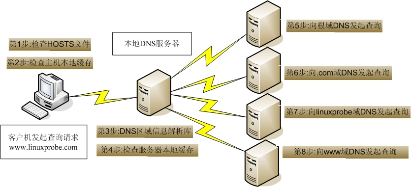 迭代查询则是指,DNS服务器在收到用户发起的请求时,并不直接回复查询结果,而是告诉另一台DNS服务器的地址,用户再向这台DNS服务器提交请求,这样依次反复,直到返回查询结果。