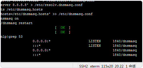 1、执行以下命令设置Dnsmasq开机启动并启动Dnsmasq服务: