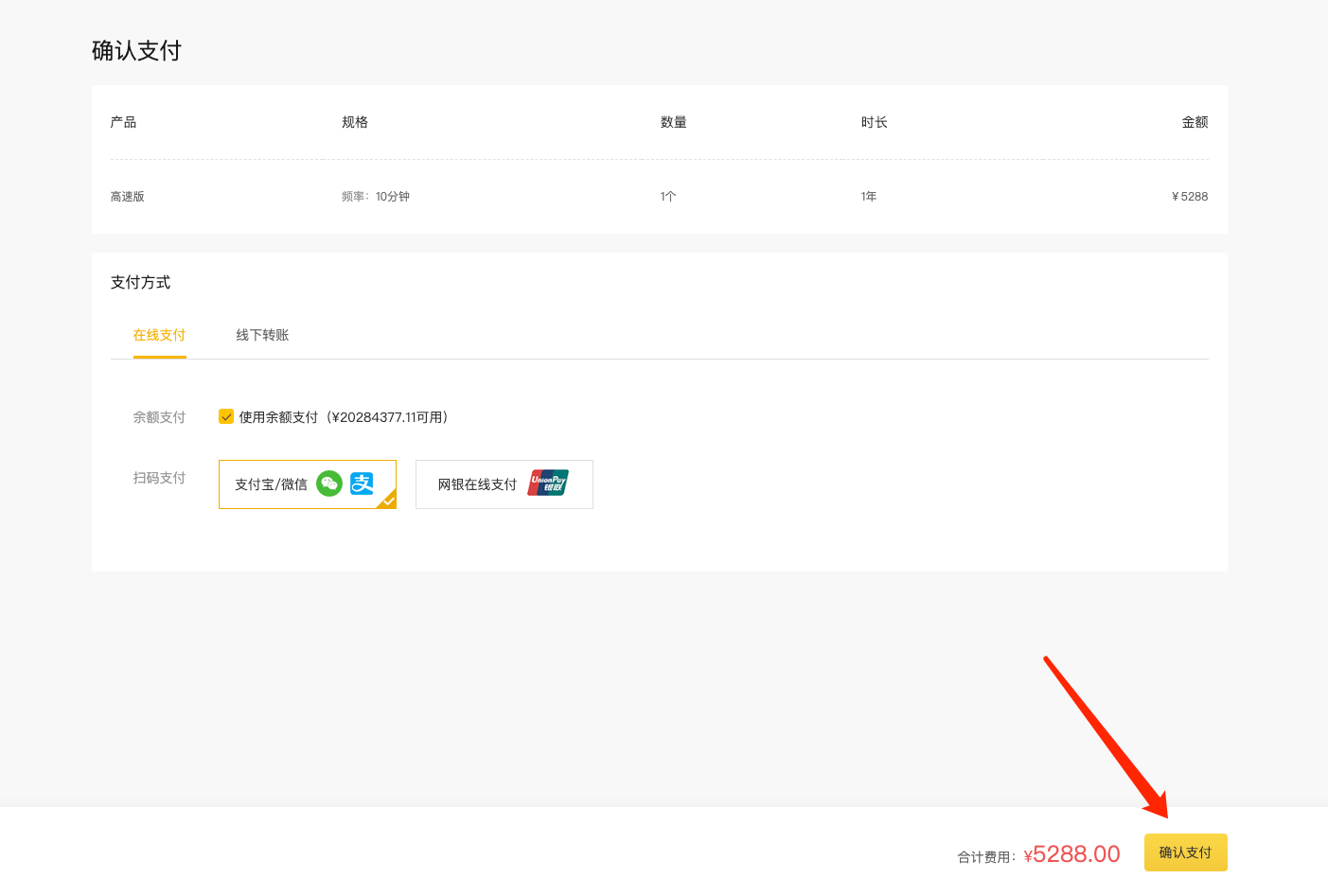 3、批量输入需要绑定的域名以及选择购买时长,点击【确认】按钮,付款完成后等待片刻即可查看污染统计结果。