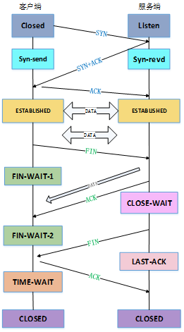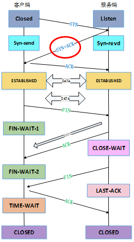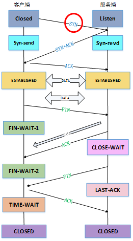 首先回顾一下tcp三次握手和四次挥手的过程,客户端向服务端发送SYN,服务端回应SYN+ACK,客户端再次回应ACK建立起连接,然后互相发送数据,客户端数据发送完后,客户端会向服务端发送FIN请求关闭连接,客户端回应ACK进行确认,等到服务端把数据发送完成后同样发送FIN进行关闭,其实这其中的每一个环节都有可能被攻击者利用发起攻击。