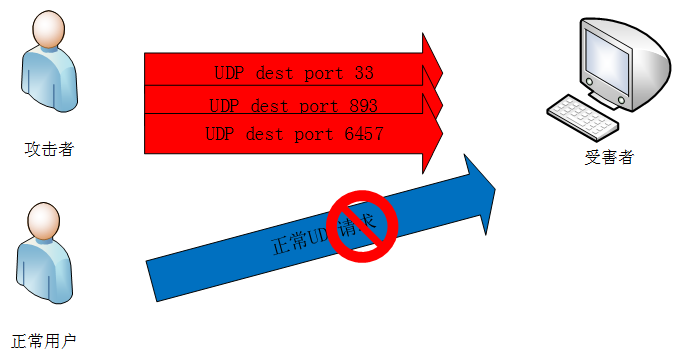 UDP FLOOD 攻击是基于udp协议,UDP 是一种无连接的协议,不需建立连接来传输数据。Udp flood攻击在短时间那模拟随机的源端口地址向随机的目的端口发送大量的udp包,服务器要处理判断是否是正常的udp包,如果不是正常的udp包,服务器要进行回应处理,造成服务器不能处理其他udp的请求