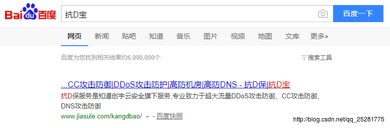 首先在百度上搜索【抗D宝】,进入抗D宝云安全官网。