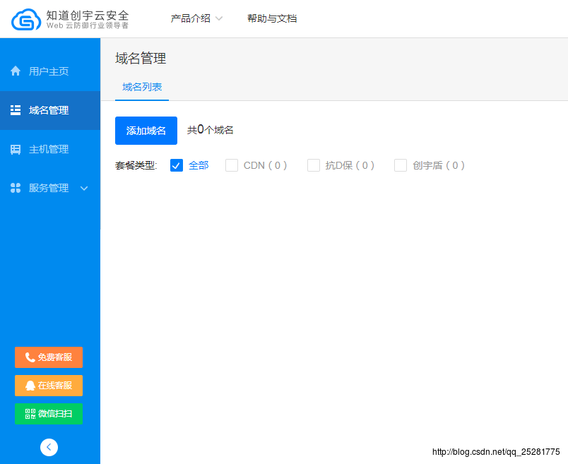登录后点击【域名管理】控制面板,选择【添加域名】。