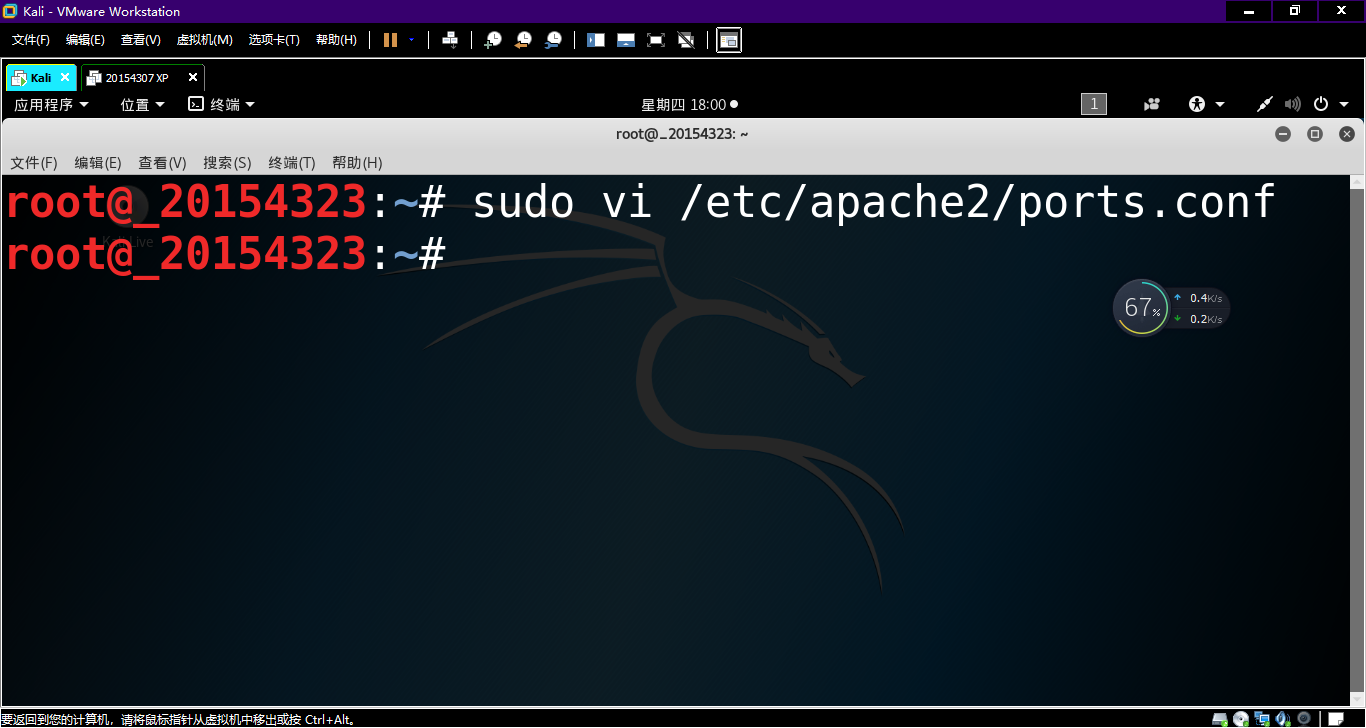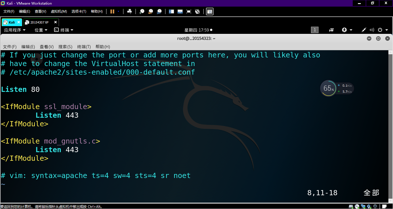 使用 sudo vi /etc/apache2/ports.conf 指令修改Apache的端口配置文件,将端口号改为80。