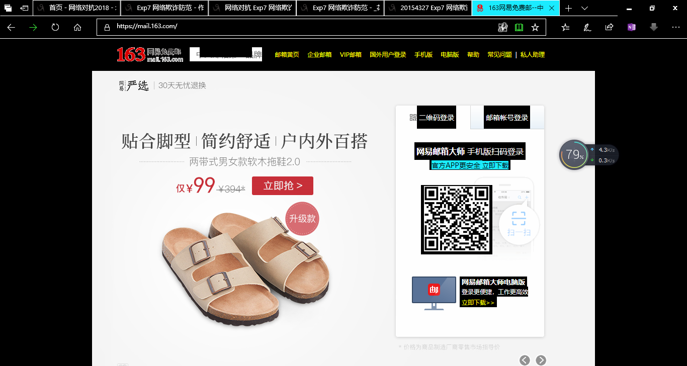 在这次实验中我深刻感受到网络中的安全问题是大大存在的。我听过一个故事,那就是一个淘宝的店家发给客户一个链接,说是领红包,结果那个人点开链接,手机就废了,成砖块了,据说银行卡的密码被盗了,钱转走了。这比我们的实验牛多了,但是我们的实验注意说明问题,那就是网络安全一定要引起我们的警惕。如果这关过不了,再好的密码也没有用。我以前非常讨厌微信在电脑上不能用密码登陆,必须用手机扫一扫才可以登陆,或者手机确认。麻烦死了。原来也是有道理的。QQ、Steam、以及其他网站在陌生的地方登陆账号的时候,会提醒邮箱验证和手机验证,这就使得即使别人获取了密码,在远处也登陆不上,而且还会给自己发一个消息说异常的地方登陆过。我有一次收到消息说我微软账户在德国有异常登陆行为,天哪,吓死我了,我赶紧把密码改了。所以不该上去的网站不能上去。我这次实验算是比较成功,但是中途很多坎坷,有一部分问题没明白,也没去深究。我做实验的一个目的就是提高网络安全意识,从这个层面上我收获是最大的。