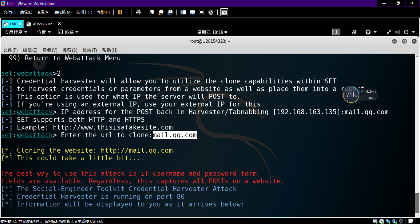 由于QQ主页做好了防护措施没办法截取到密码,所以只能再在ettercap的DNS缓存表里将网址设定为校网首页的地址。