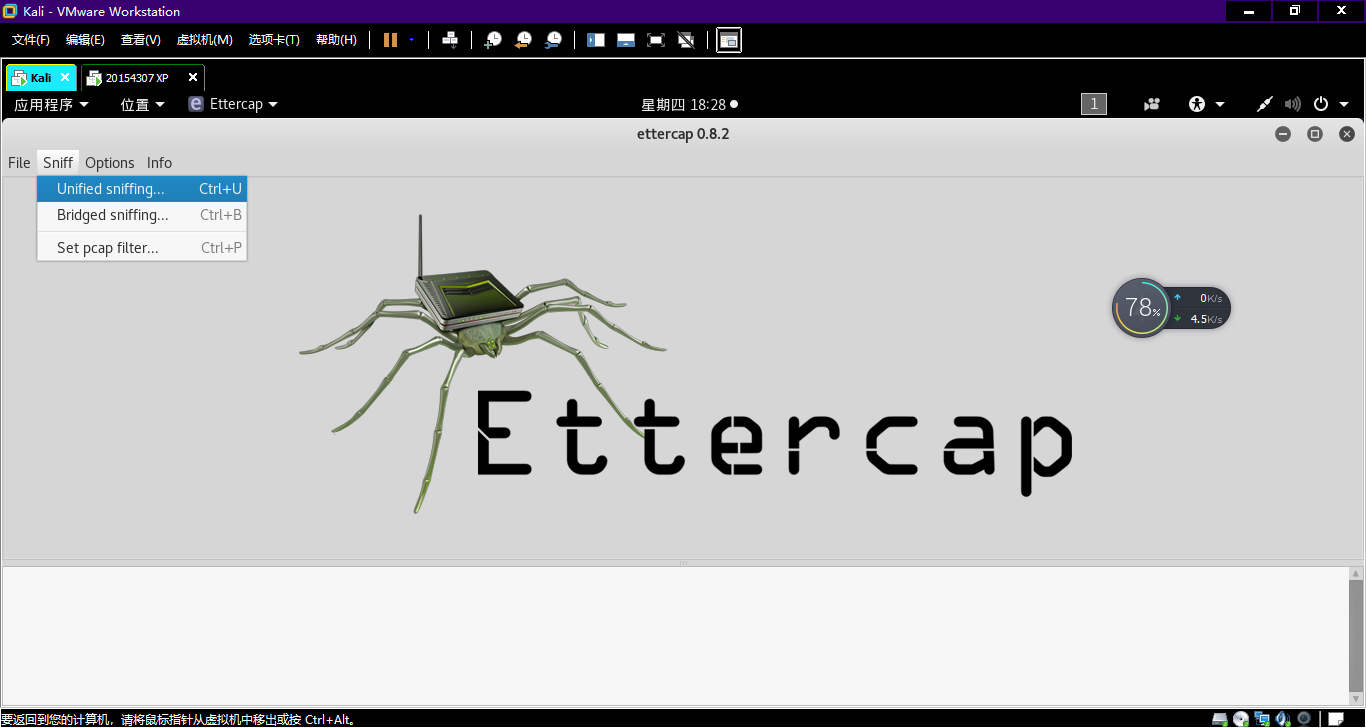 首先使用指令 ifconfig eth0 promisc 将kali网卡改为混杂模式。