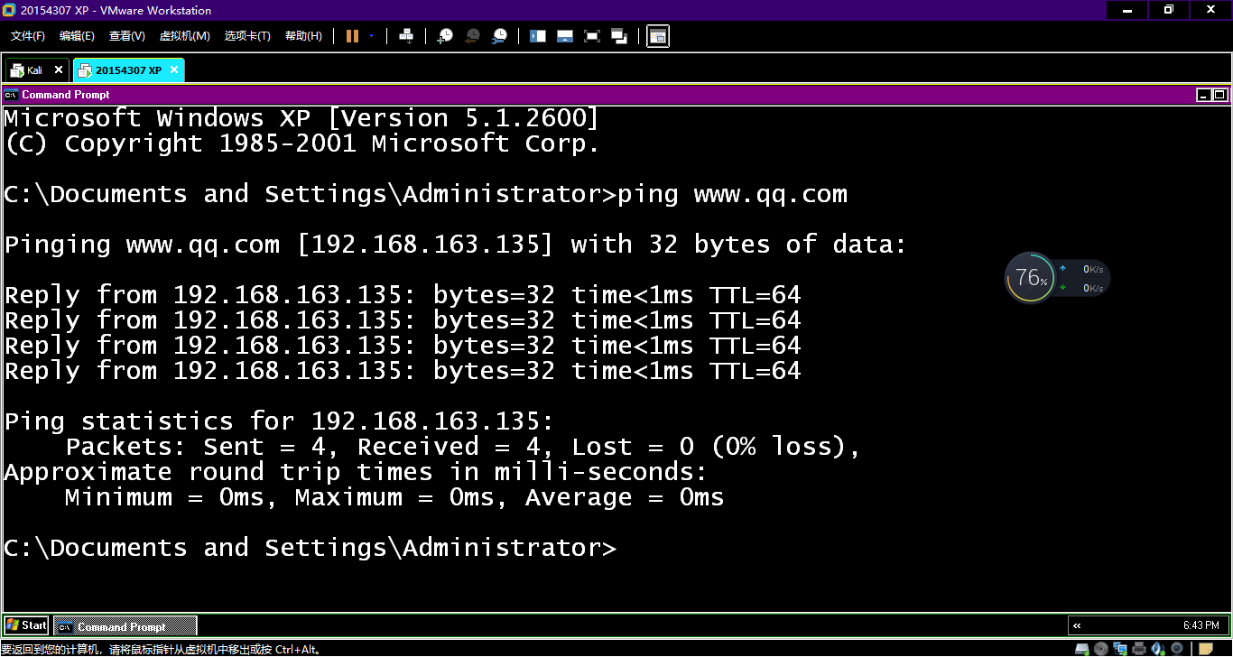 首先确保攻击机Kali与靶机之间能相互ping通。