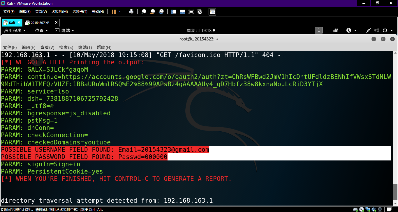 然后惊喜地发现自己电脑上出现了刚才输入的密码。为什么?因为把这个密码上传到了Kali的IP上,Kali还是伪装得太好了。千万不要上当受骗。