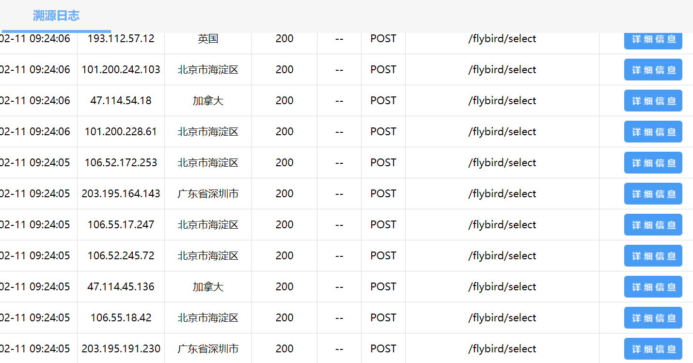 然而,总有那么个别不怀好意的人,通过人工分析飞泊云停的停车记录接口,精准选择了几个计算资源最多(最消耗CPU和内存)的动态API接口,同时动用了数以十万计的肉鸡(或代理IP),向源站服务器发动频繁请求。由于这些请求都是合法的,并且单个IP频率很低(不超过10个),阿里云waf视为合法流量,全部被穿透了打在源站服务器上,导致服务器长期CPU占用99%经常报警甚至重启,严重影响了客户停车体验。