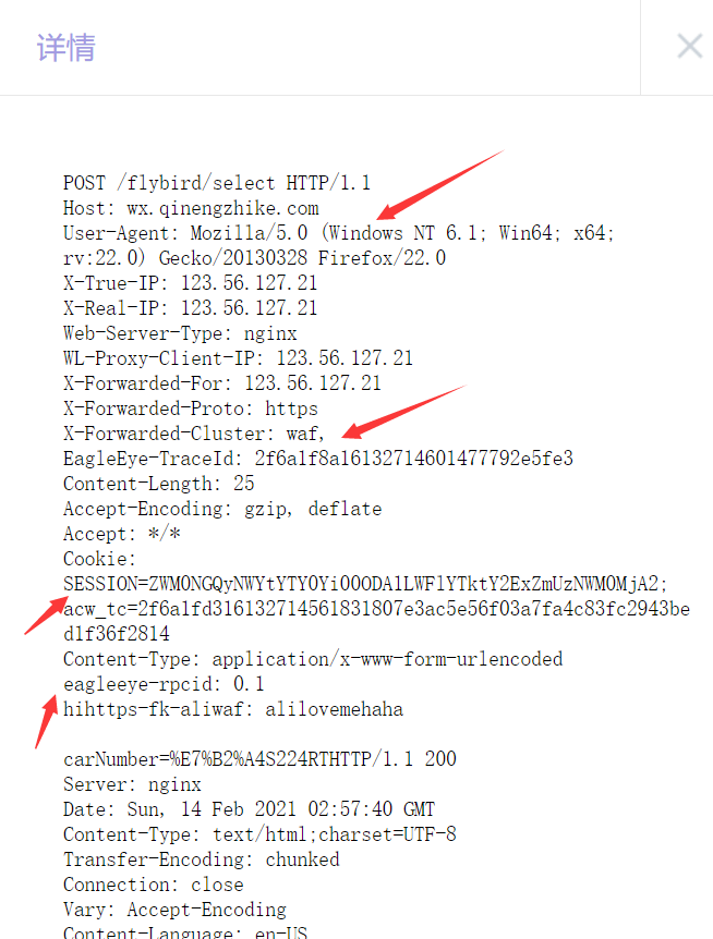 这个时候任何waf都不敢贸然封杀正常流量,我们用人工的方式分析溯源日志里的流量,很快发现了特征:攻击构造的HTTP头,和真实微信支付里面的HTTP头如Cookie内容字段上有一定区别。如下图所示的user_agent、cookie、traceid等,总有地方和真实的微信支付不一样。