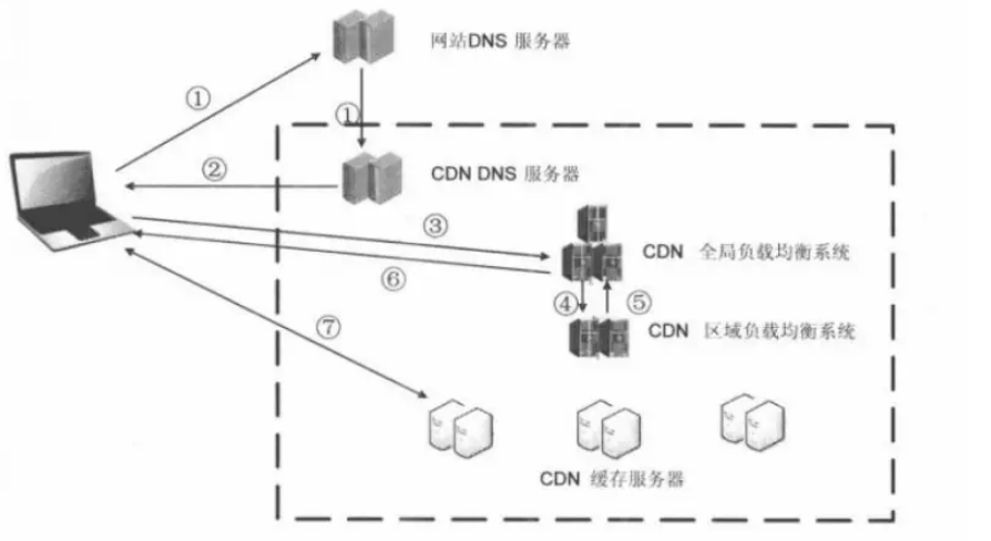 7. 用户向缓存服务器发起请求,缓存服务器响应用户请求,将用户所需内容传送到用户终端。如果这台缓存服务器上并没有用户想要的内容,那么这台服务器就向网站的源服务器请求内容,源服务器返回内容给缓存服务器,并根据用户自定义的缓存策略判断是否进行缓存,并返回给用户。