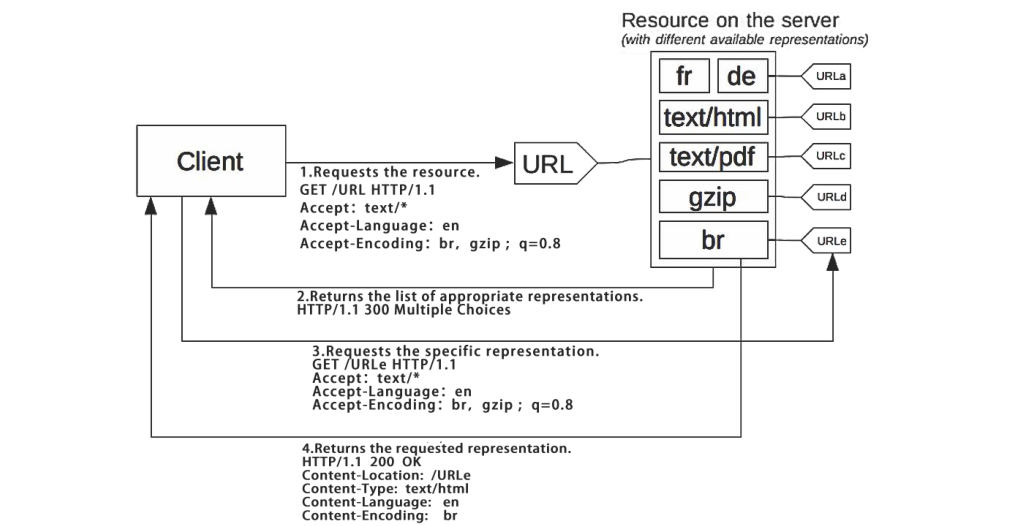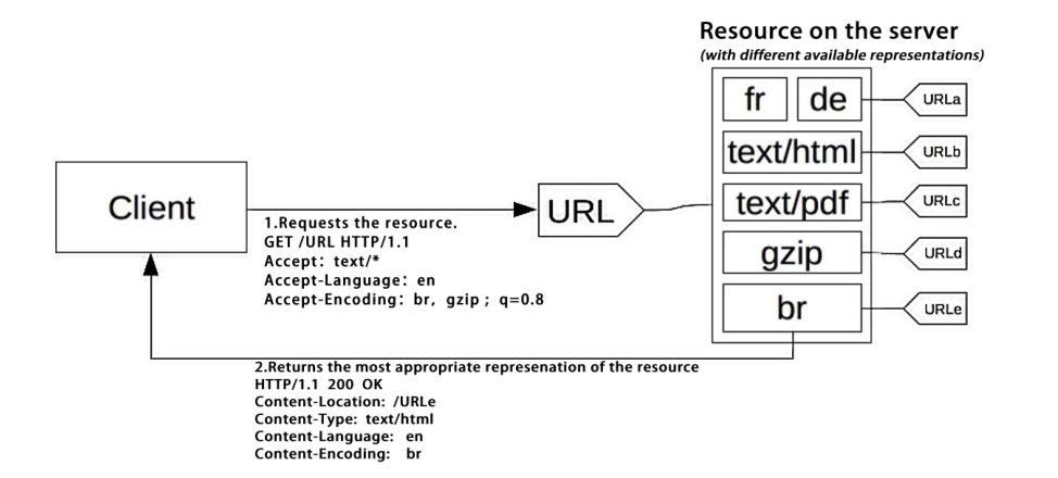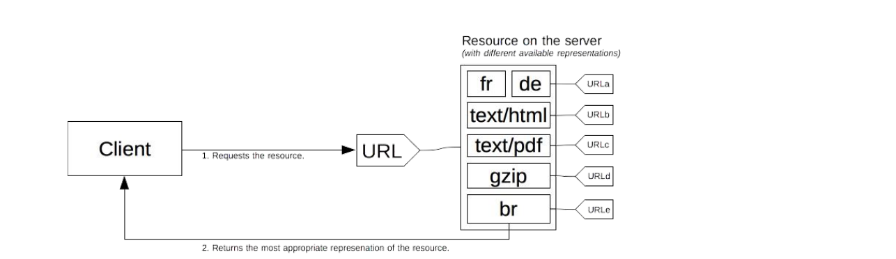每个URI指向的资源可以是任何事物,可以有多种不同的表述,例如一份文档可以有不同语言的翻译、不同的媒体格式、可以针对不同的浏览器提供不同的压缩编码等。