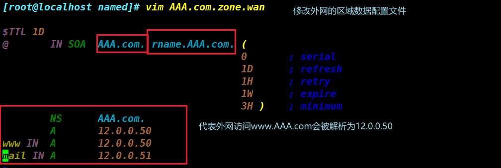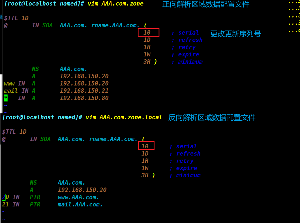 一》修改主域名服务器的区域配置文件,修改正,反向区域配置