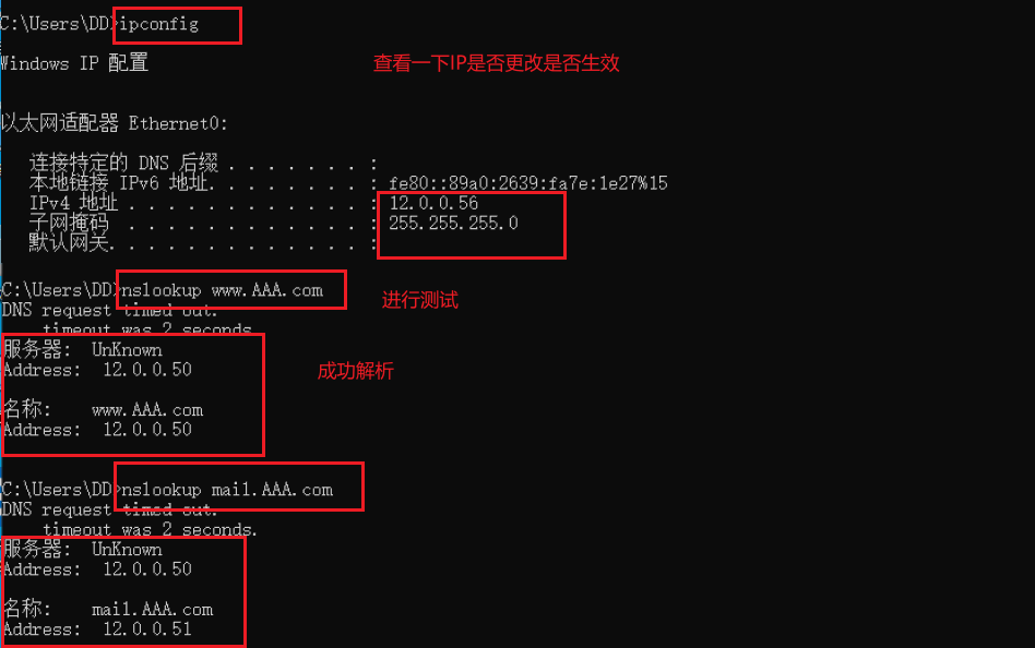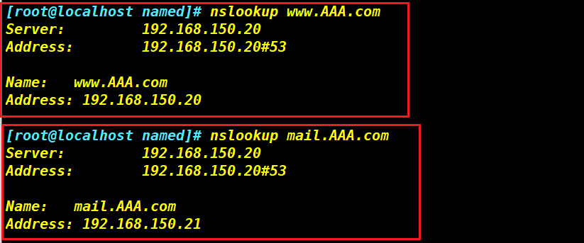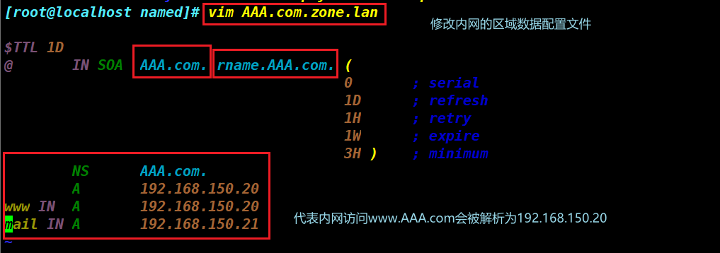 在网关服务器搭建DNS分离解析,使局域网主机解析www.AAA.com为192.168.150.200,外网主机解析www.AAA.com为12.0.0.50