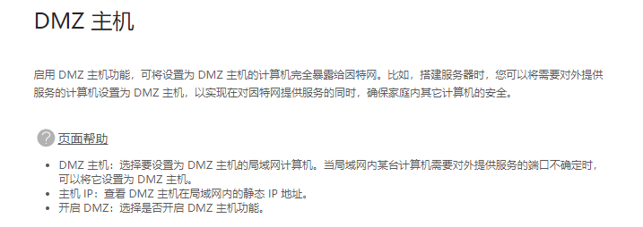 设置DMZ主机需要注意自己电脑的防护,如果电脑所装软件过多,被利用漏洞也就更多。在公网环境下,容易被入侵,建议只开放对应的端口。