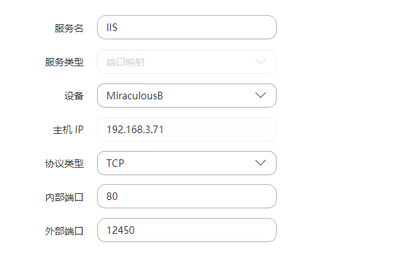 之后再路由器那里设置NAT端口转发就行,因为家庭宽带80端口会被禁用。外部端口设置12450,内部设置80即可。或者设置DMZ主机。