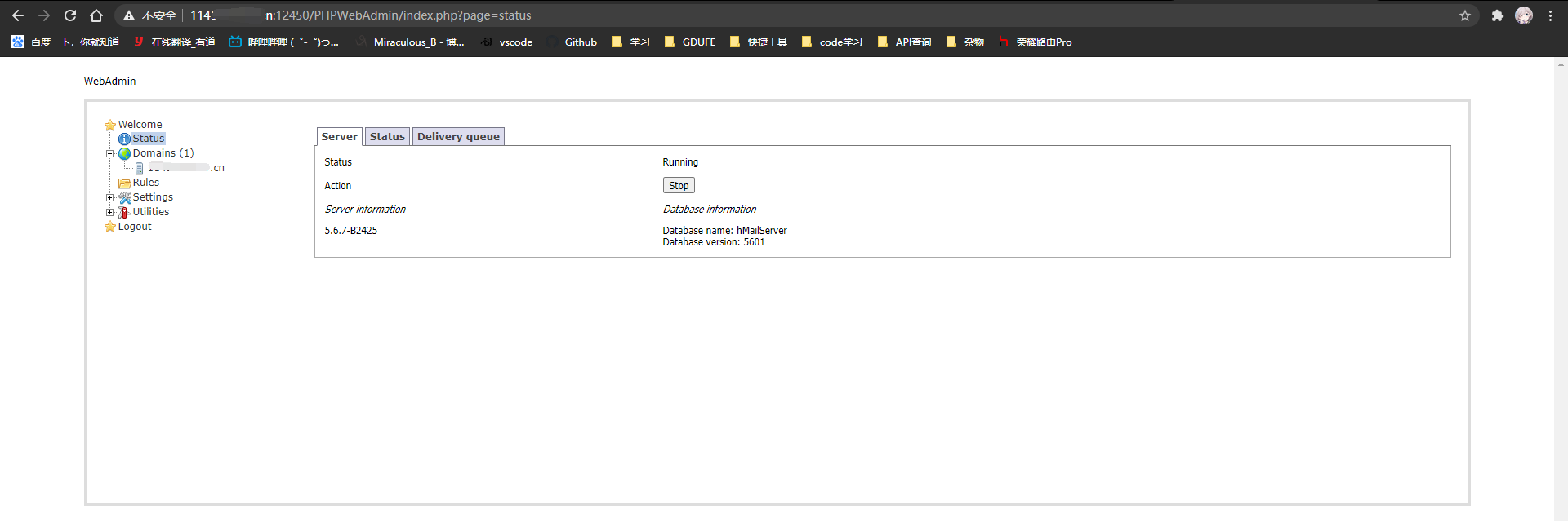 之后在cmd输入iisreset重启iss服务,就能进入hmailserver的web端啦。