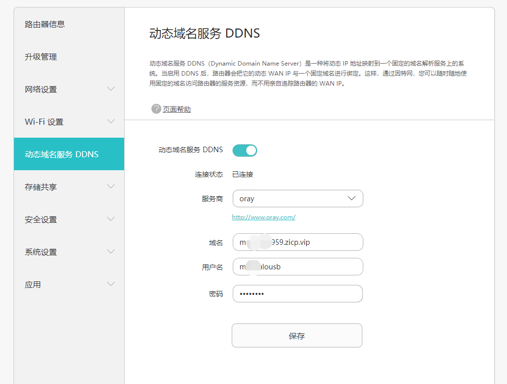 这里我使用了花生壳的祖传免费DDNS,然后用我自己的域名的CNAME解析到花生壳用于DDNS的域名(免费的域名就是丑)