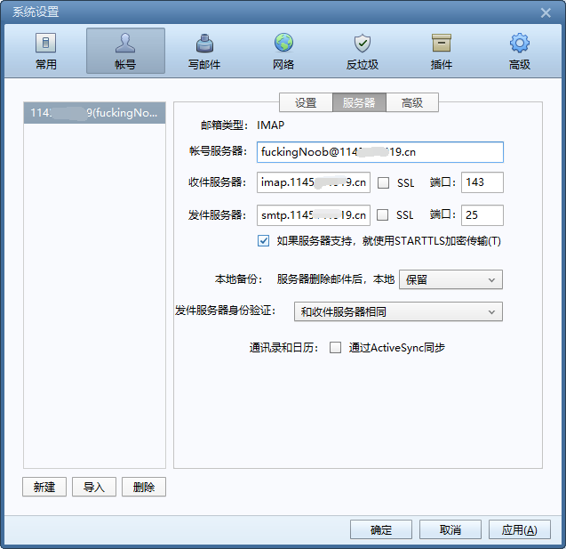 最后用foxmail收发邮件,发现有各种问题,能收不能发,或能发不能收.但删除FOXMAIL账号重新建立后一切就正常了.