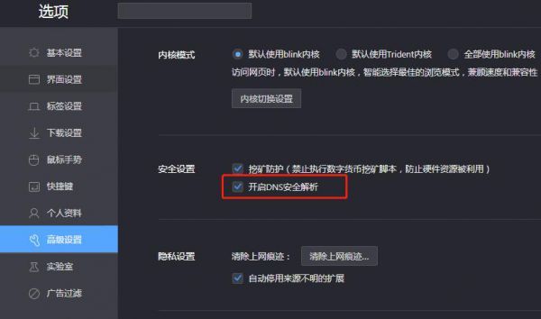 在安全浏览器安装之后,通常只需打开浏览器的设置页面,在“高级设置”或“安全”等字样的选项之下,就能发现与DNS防护相关的功能,而绝大多数安全浏览器的这一功能也是默认开启的。