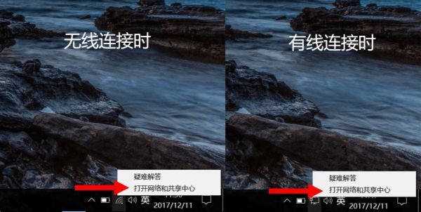 右键单击桌面右下角的网络图标,并单击 “打开网络和共享中心”。