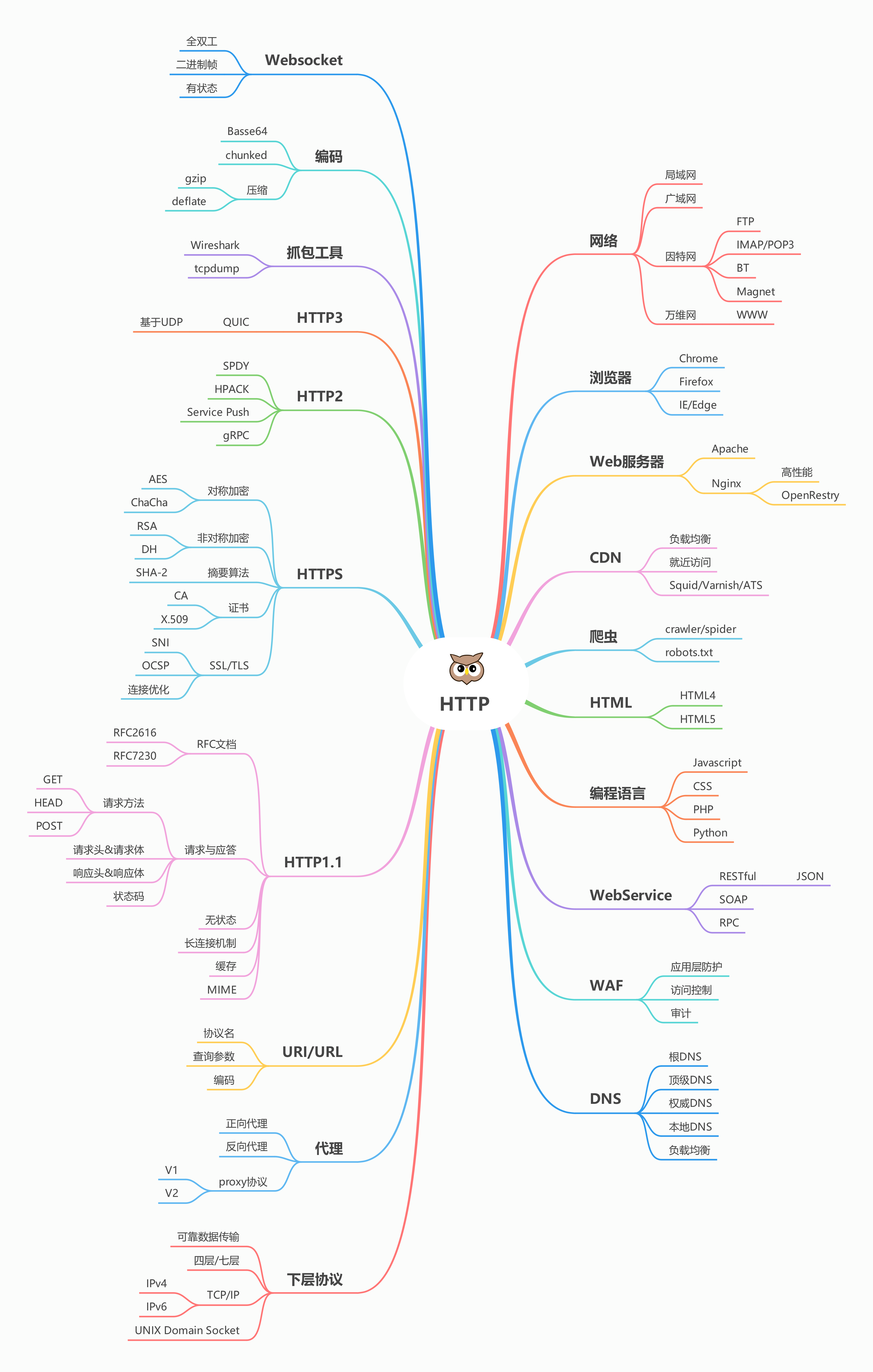 DNS和IP地址已经可以定位了互联网上的主机,为了找到主机上的文本、图片等等信息,就出现了URI(统一资源标识符),另一种更常用的形式是URL(统一资源定位符)也就是我们平常说的网址,它主要有三部分