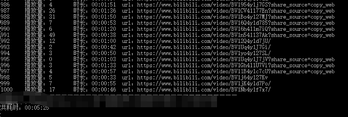 4.当天晚上再就没看,第二天接口就好用了。这次将接口调用频率改为每秒5次,尝试了1000条,顺利通过。还没开心两分钟,正式的3000多条数据,干到1550多条的时候又挂了……这次我特意记了一下被阻断的时间,大概是两个小时。阻断期间又是一顿查,在github上找到了一些人的讨论,过快请求 /x/space 导致限流,发现有人与我情况类似,但是比我精确些,1500次/10分钟,借鉴经验,当接口正常之后,我改成每次只处理1000条,每秒调用5次,果然再也没遇到过被阻断的情况。就是处理得慢了点,1000条用了5分多钟……算了,毕竟安全为主,被办又是2个小时,不值当的。
