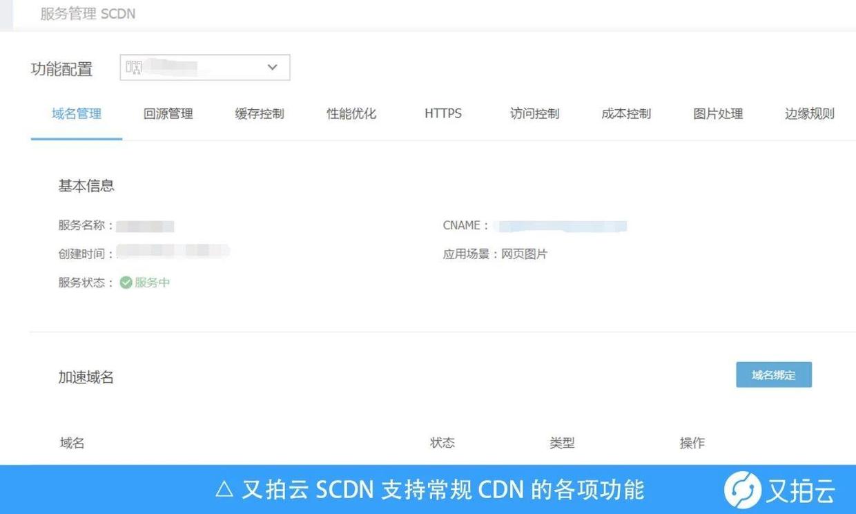 - 支持 CDN 常规配置:SCDN 使用的高防 CDN 集群由于衍生自又拍云自有 CDN 产品,因此常规 CDN 产品的相关配置它全都支持。
