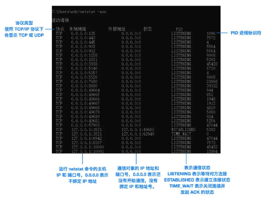 周知端口号:在主机的应用程序中,从 0 – 1023 的端口号是受限制的,被称为周知端口号,这些端口号一般不能占用。