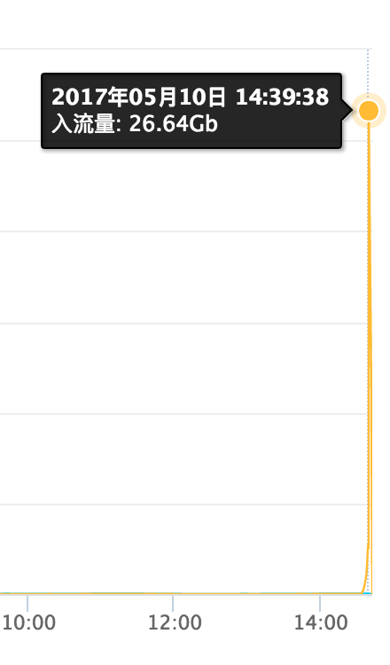 14:39,第1次攻击流量26.64Gb,针对的是其中1台负载均衡A,攻击后,立即被阿里云云盾屏蔽。