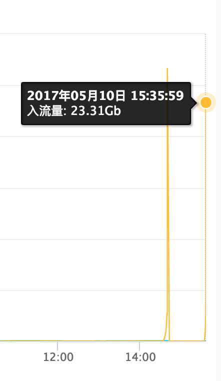 15:35,第3次攻击流量23.31Gb,针对的又是负载均衡A,攻击后又被阿里云云盾屏蔽。又是更改dns解析,又是继续恳请阿里云临时解除屏蔽。