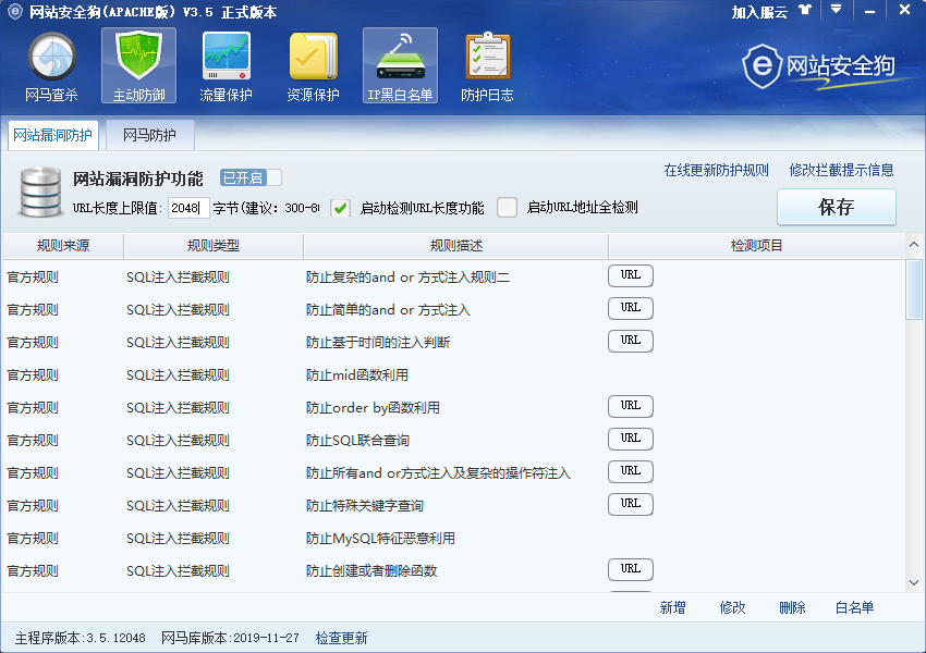 网站安全狗是一款集网站内容安全防护、网站资源保护及网站流量保护功能为一体的服务器工具。功能涵盖了网马/木马扫描、防SQL注入、防盗链、防cc攻击、网站流量实时监控、网站CPU监控、下载线程保护、IP黑白名单管理、网页防篡改功能等模块。能够为用户提供实时的网站安全防护,避免各类针对网站的攻击所带来的危害。
