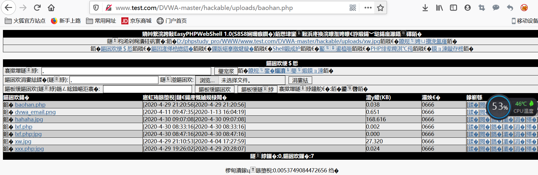 都到了这一步,不能放弃,还有希望,想到了php的包含函数,构造好包含函数后,命名为baohan.php,包含咱们上传的大马,通过上面的方法上传,如下